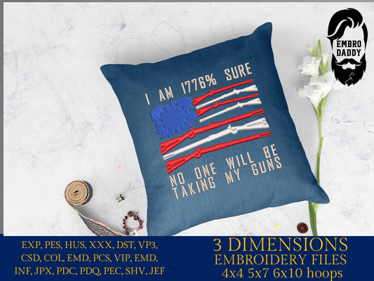 Machine Embroidery files, I am 1776 % sure, PES, dst, xxx, hus & more