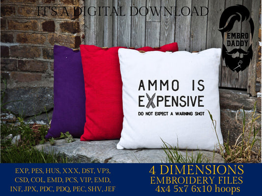 Machine Embroidery files, Ammo is expensive, PES, DST, xxx, hus & more,