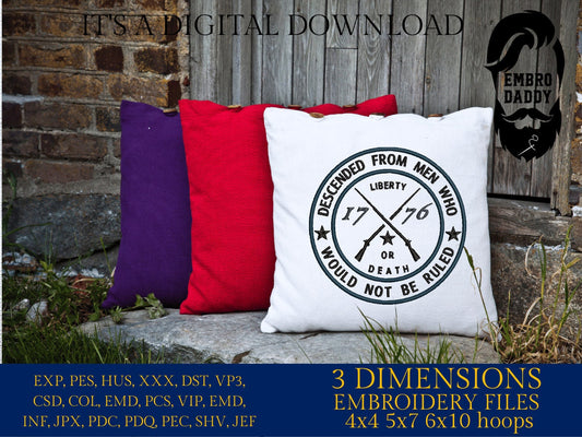 Machine Embroidery files, Liberty or death 1776, DST, PES, xxx hus & more,