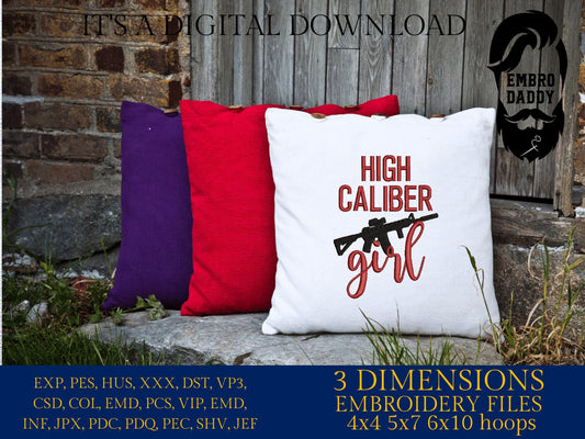 Machine Embroidery files, high caliber girl, PES, xxx, hus & more