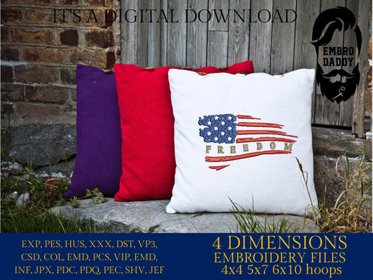 Machine Embroidery files, USA flag, Freedom, American Flag, PES, xxx, hus & more