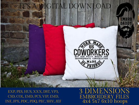 Machine Embroidery files, work made us coworker, PES, xxx, hus & more, embroidery files