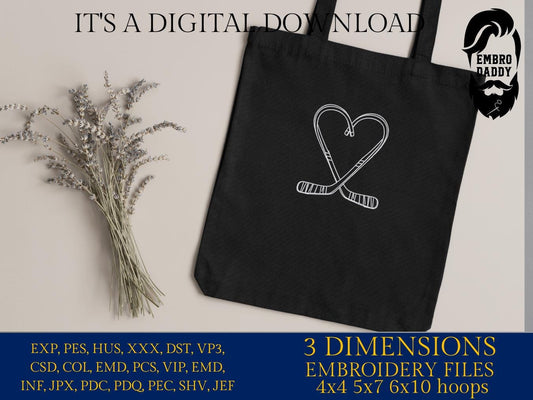Machine Embroidery, Hockey heart, PES, dst, xxx, hus & more