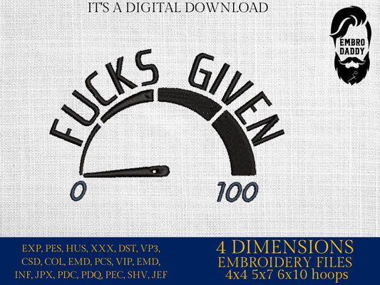 Mature, Machine Embroidery files, zero f*ck given, funny PES, DST, xxx, hus & more
