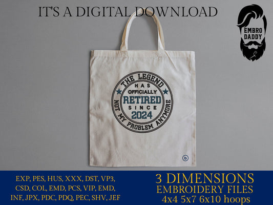 Retired 2024 Embroidery Pattern File in PES, DST, hus & more