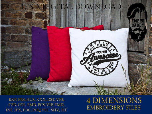Machine Embroidery files, sometimes you forget you're awesome, PES, xxx, hus & more