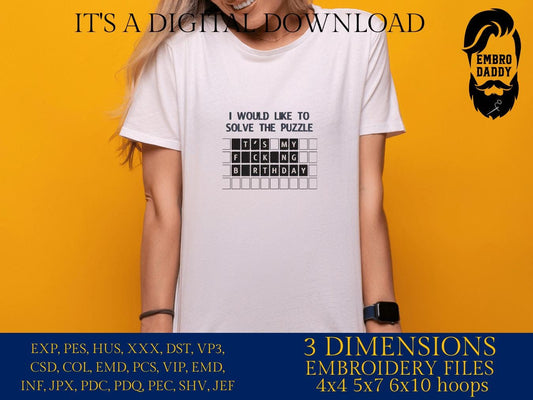 Machine Embroidery files, It's My Fucking Birthday, Funny Birthday, PES, dst, vip, xxx, hus & more