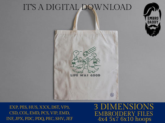 Machine Embroidery files, Life Was Good Dinosaur Destruction Asteroid, PES, DST, xxx, hus & more