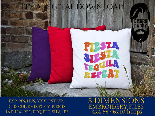 Machine Embroidery files, fiesta siesta tequila, PES, DST, xxx, hus & more