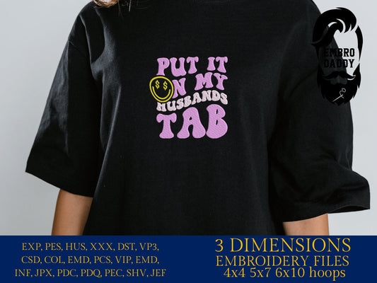 Machine Embroidery files, put it on my husbands tab, funny, PES, DST, xxx, hus & more