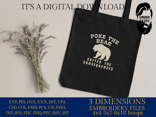 Machine Embroidery files, poke the bear, funny, PES, dst, xxx, hus & more