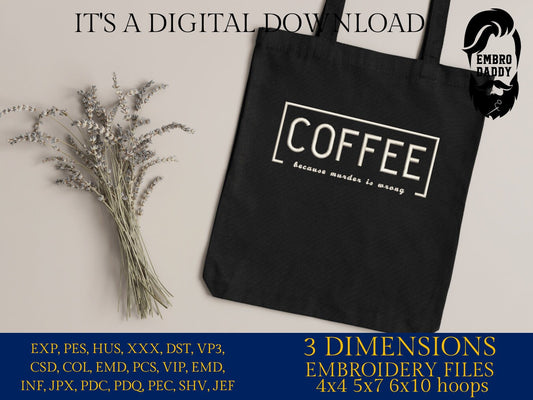 Machine Embroidery files, Coffee because murder is wrong, DST, PES, xxx hus & more,