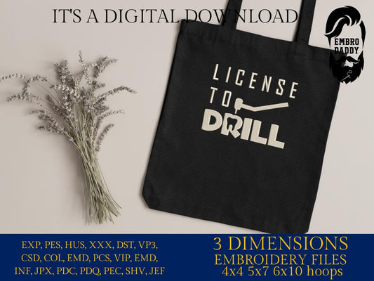 Machine Embroidery files, License to drill, dentist, funny, DST, PES, xxx, hus & more