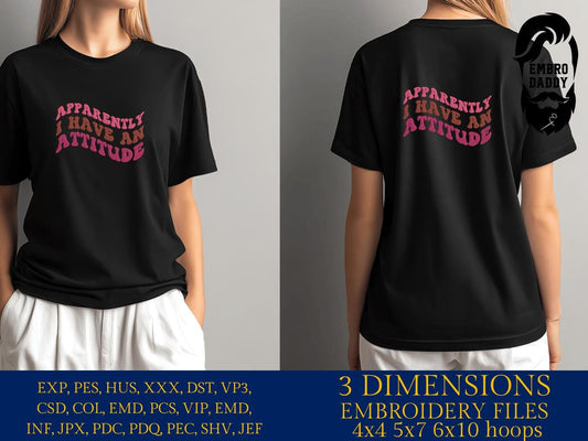 Machine Embroidery files, Apparently I Have An Attitude, Funny, Trendy , PES, DST, xxx, hus & more