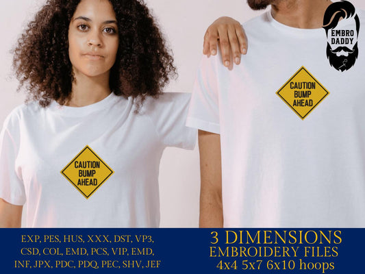 Machine Embroidery files, Diamond Shaped Bright Yellow "Caution Bump Ahead", PES, xxx, hus & more