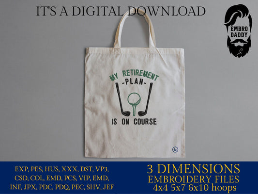 Machine Embroidery files, My retirement plan, golf, PES, DST, hus & more