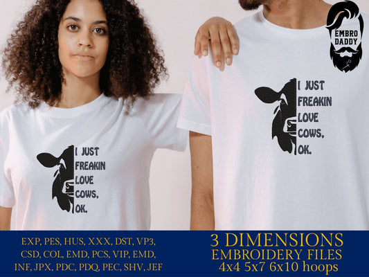 Machine Embroidery files, I just freakin love cows, PES, xxx, hus & more