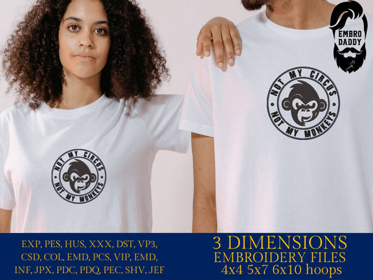 Machine Embroidery files, Not my circus not my monkeys, PES, DST, xxx, hus & more