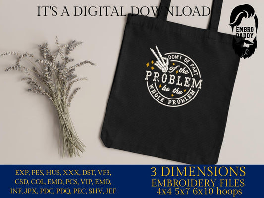 Machine Embroidery files, don't be a part of the problem, sarcasm, funny, DST, PES, xxx, hus & more
