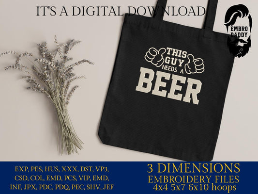 Machine Embroidery files, funny, this guy needs a beer, dst, PES, xxx, hus & more