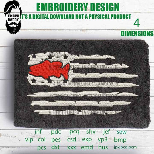 Machine Embroidery files, USA flag Bass, American Flag gift idea PES, xxx, hus & more,