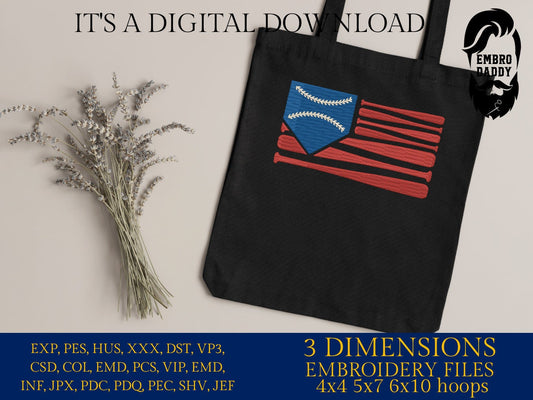 Machine Embroidery files, USA flag baseball, DST, PES, xxx, hus & more