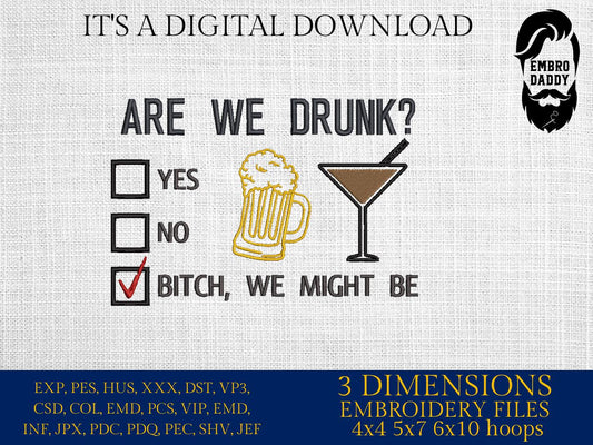 Machine Embroidery files, are we drunk? funny, dst, PES, xxx, hus & more