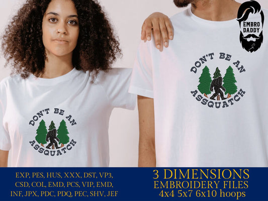 Machine Embroidery files, don't be an assquatch, PES, DST, xxx, hus & more