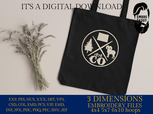 Machine Embroidery files, Colorado, est 1876, DST, PES, xxx hus & more