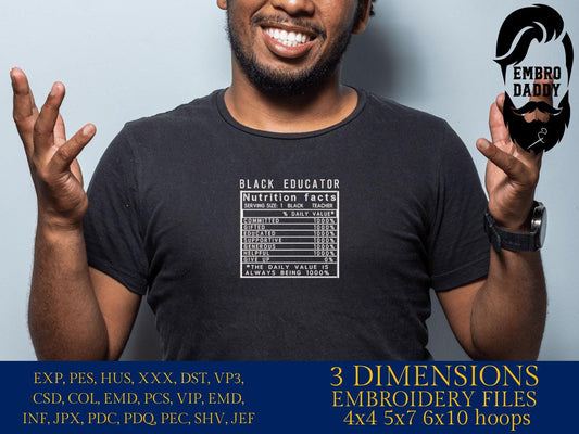 Machine Embroidery files, Black Educator facts, PES, dst xxx, hus & more