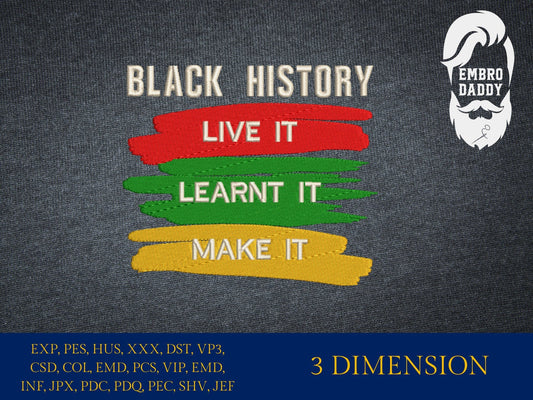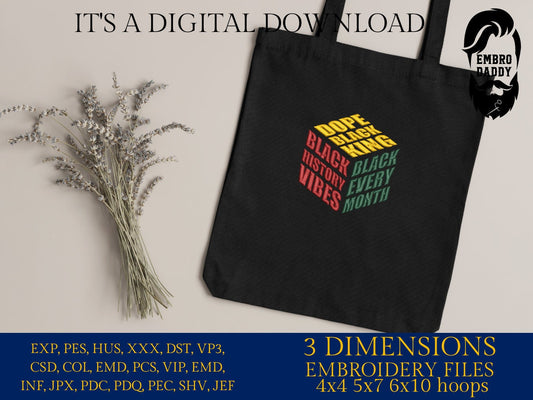 Machine Embroidery files, Black History is World History, PES, hus, dst, vp3 & more