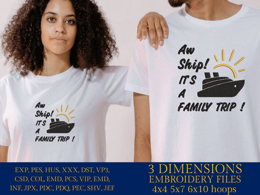 Machine Embroidery files, aw ship it's a family trip, DST, PES, xxx, hus & more