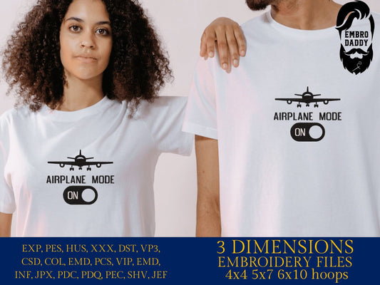 Machine Embroidery files, Airplane mode on, PES, hus, dst, vp3 & more