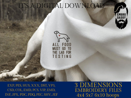 Machine Embroidery files, all food musto go to the lab, pes, hus & more