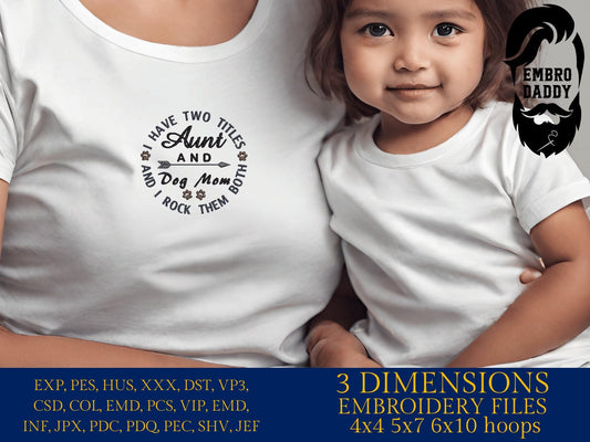 Machine Embroidery files, Aunt and Dog Mom, embroidery files, PES, xxx, hus & more, embroidery files