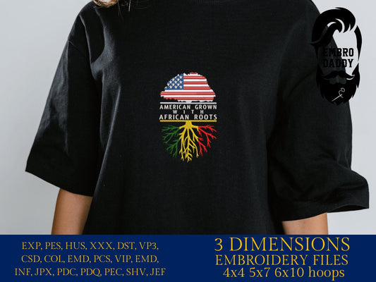 Machine Embroidery files, American Grown African Roots Family Quote, gift idea PES, xxx, hus & more