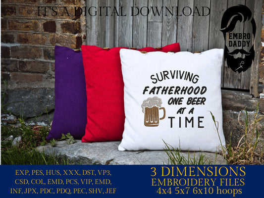 Machine Embroidery files, surviving fatherhood one beer at a time , DST, PES, xxx, hus & more