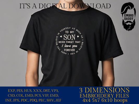Machine Embroidery files, to my son, never forget I love you forever PES, DST, xxx, hus & more