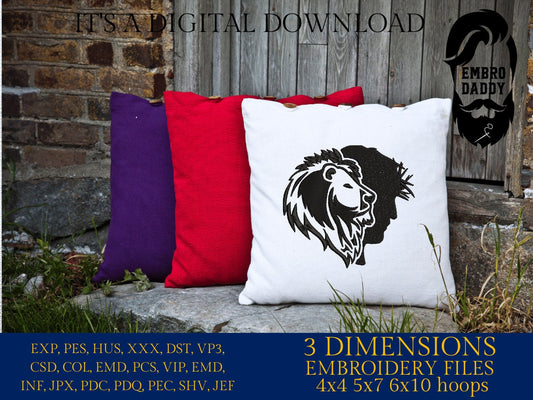 Machine Embroidery files, Jesus Christ and Lion of Juda PES, xxx, DST, hus & more
