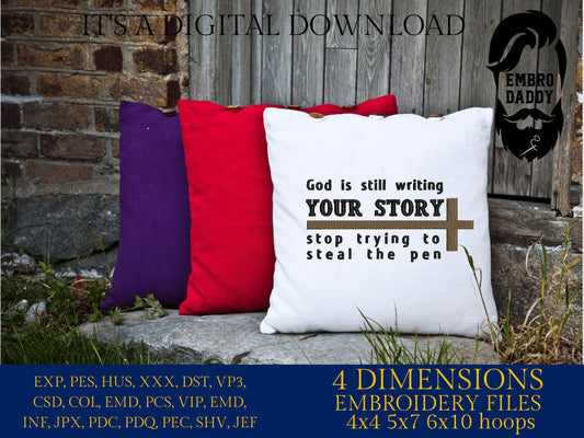 Machine Embroidery files, God is still writing your story, PES, DST, xxx, hus & more