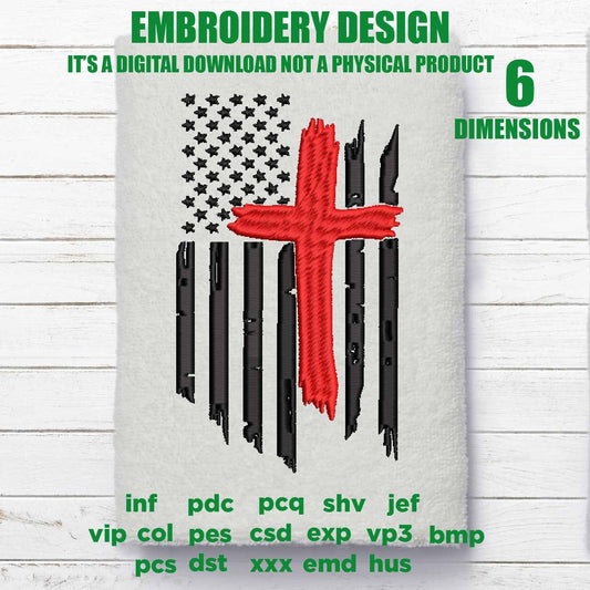Machine Embroidery files, USA flag Cross, PES, xxx, hus & more