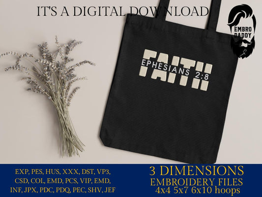 Machine Embroidery files, Faith, Ephesians 2:8, PES, xxx, DST, hus & more