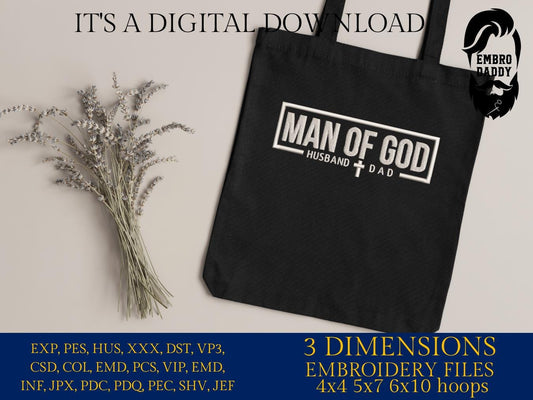 Machine Embroidery files, Man Of God, husband, dad, PES, DST, xxx, hus & more