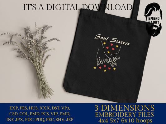 Machine embroidery files, Soul Sisters, PES, DST, hus & more