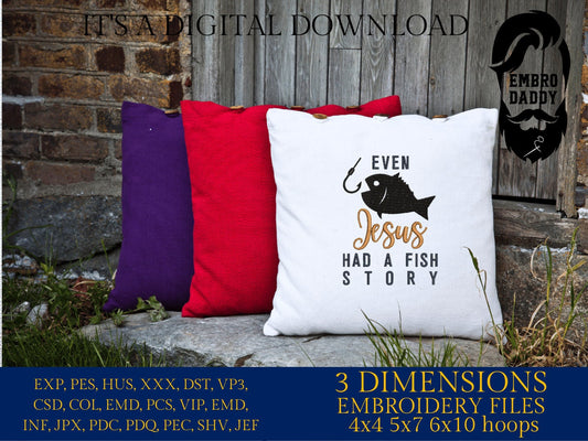 Machine Embroidery files, Even Jesus has fish story, Fishing, Christian, PES, xxx, hus & more