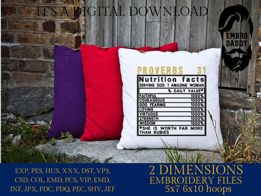 Machine Embroidery files, Proverbs 31 facts, PES, dst xxx, hus & more