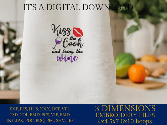 Machine Embroidery files, kiss the cook, DST, PES, xxx, hus, dst & more