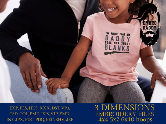 Machine Embroidery files, proof that my daddy does not shoot blanks, PES, xxx, hus & more