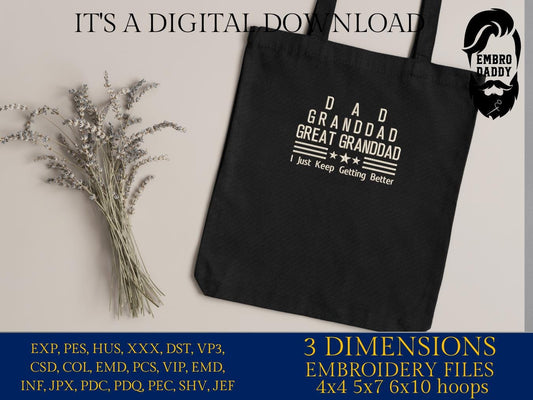 Machine Embroidery files, Dad, Granddad, Great Granddad, PES, xxx hus & more