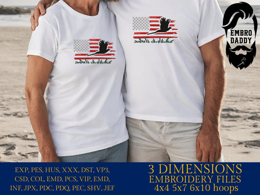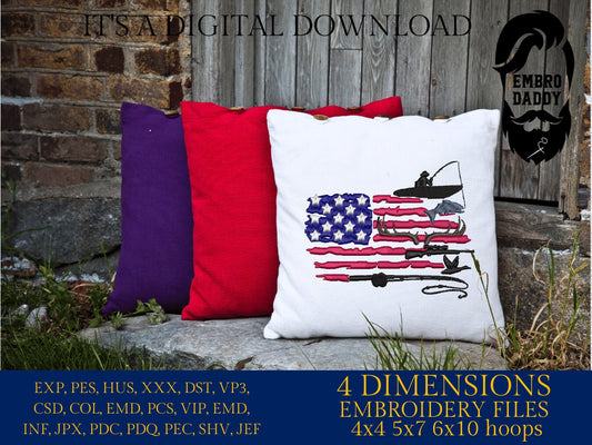 Machine Embroidery files, Fishing and Hunting American Flag, PES, DST, xxx, hus & more,